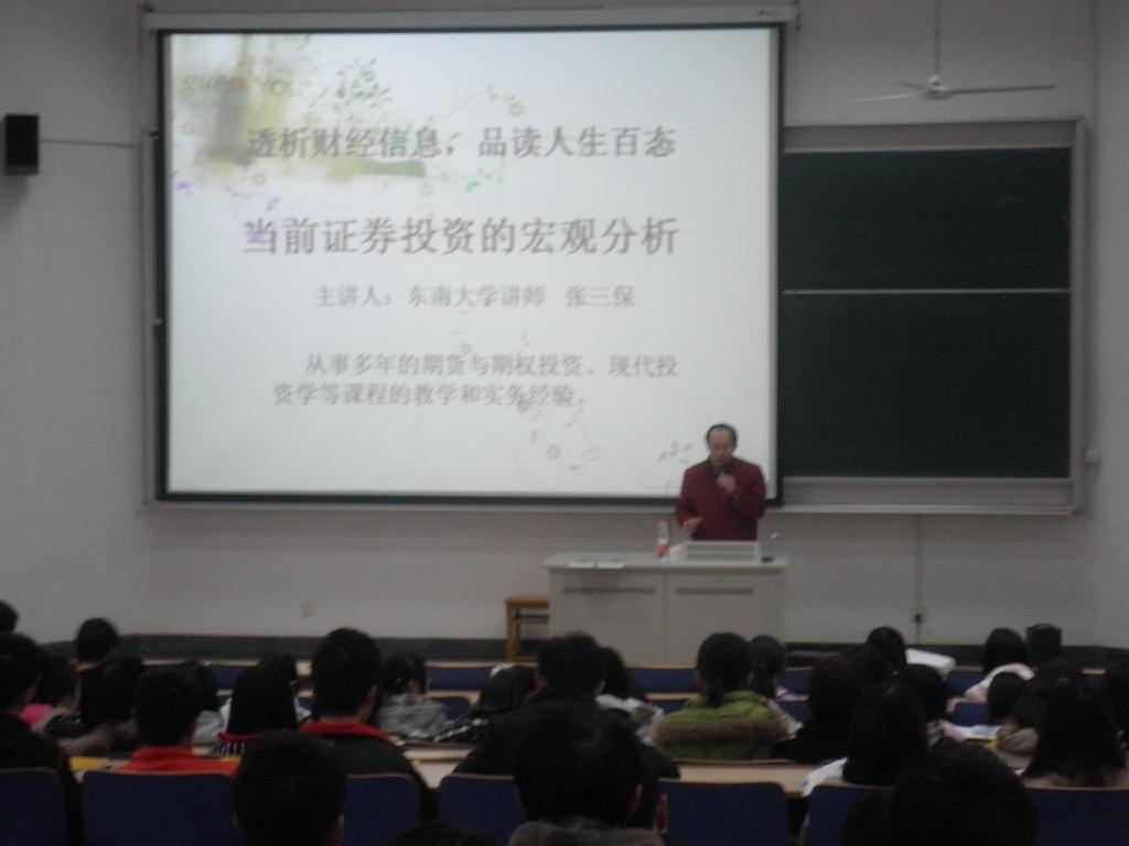 2010年11月15日下午三点半,以当前证劵投资的客观分析为主题的“透析财经信息,品读人生百态”系列讲座第三场,在文昌院114教室拉开帷幕。