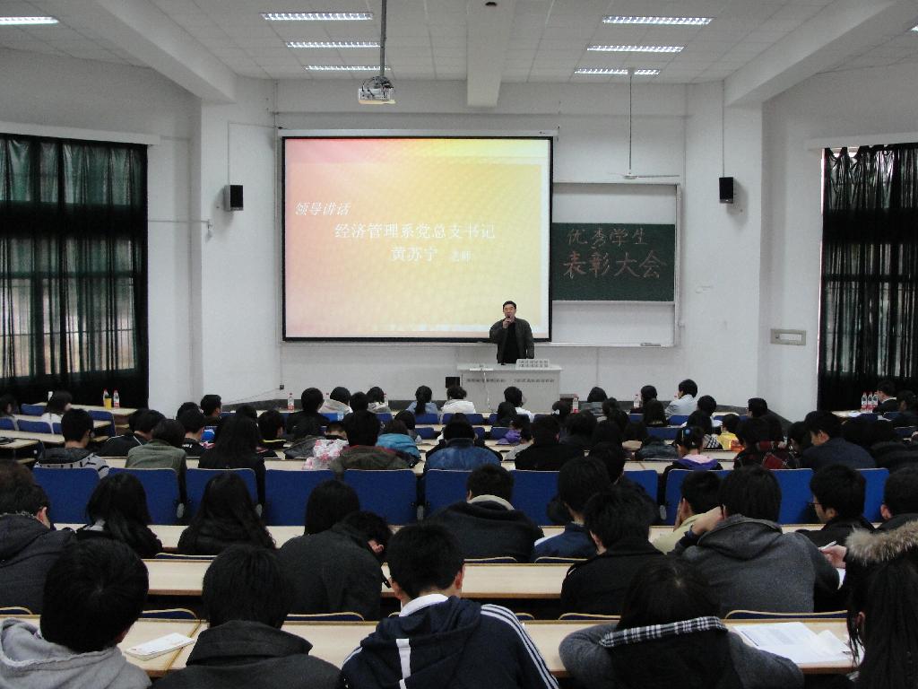 3月29日下午,经济管理系在文昌院110教室召开了2010年度社会活动优秀团队学生表彰大会。经济管理系党总支书记黄苏宁、学办副主任李清源、全体辅导员及各班学生干部参加了大会。会议由系分团委书记羊栋主持。