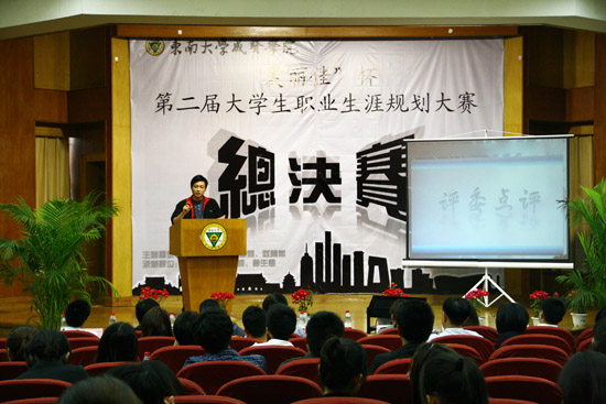 比赛分为个人展示和评委提问两个环节。10位选手通过视频和精彩演讲向大家展示了各自的职业规划,评委们精彩的点评和建议让每位选手和观众受益匪浅。09级财务管理专业徐君同学的“大学生‘村官’梦”,09级市场营销叶凡同学的“新华人寿客服经理”,09级电力系统专业梁新舵同学的“美的徐州区域经理”获得特等奖。
