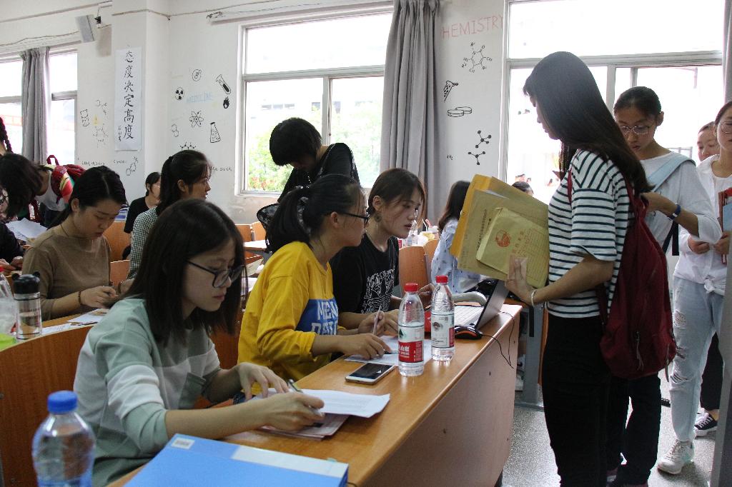 分团委学生会在学校的南门和东门安排了摆摊的志愿者,为长途跋涉来的新生,把生活用品都准备成套、齐全,还安排了学长学姐来接受新生和家长们的咨询,并由他们引导到报道的教室和就寝的宿舍,同时沿途为你介绍我校的各个场所,叮嘱大一军训的注意事项。在金坛二楼的教室里,永利集团88304官网的辅导员在为迎新做最后的工作嘱咐,学长学姐们也早已整装待发,以最亲切的笑容等待我们新生的到来。报到处的各个环节都有条不紊的进行着,每一个环节、每一步骤都会有学长学姐的辅助,高效的办事效率,亲切的问候态度,很快建立了学生及其家长对我校的学生认可。