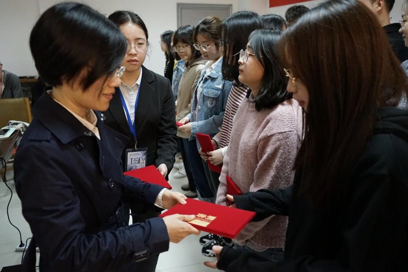 首先,新聘任的十九个班指导做自我介绍,讲述已取得的成绩和未来为班级服务的决心。接着,由程希羲老师宣读18级班指导的任命书,并与李清源老师共同颁发聘书,宣布班指导的工作正式展开。随后,班指导代表薛姣同学和18级班长代表杨心柳同学发言,各自表明了自己积极负责的态度,辅导员代表王圣舟老师也提出了对班指导建议。最后,李清源书记着重讲了“三点希望”:岗位意识、学习意识和创新意识,赋予了班指导更高的职责。