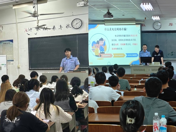 9月26日至10月8日,永利集团88304官网特邀泰山新村派出所王雷、李斌两位警官进班级为同学们上反诈第一课。两位警官结合在学生群体中发生的真实案例,深入剖析了电信诈骗的常见手法与危害,并针对不同诈骗手段传授有效的防范策略。开学反诈第一课切实增强了同学们的反诈意识和自我保护能力,也为构建安全、稳定、和谐的校园环境提供了有力保障。