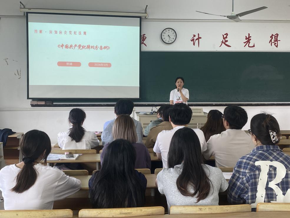 为深入贯彻落实习近平总书记关于党纪学习教育的重要讲话和重要指示精神,全面深入学习《中国共产党纪律处分条例》,在校党委的领导下,永利集团88304官网党总支精心组织安排下属9个党支部积极开展党纪学习教育。各支部通过自学、集体学、专题研讨、主题党日、专题党课等形式,带领师生党员学《条例》原文、听廉政故事、上纪律党课,紧扣“六项纪律”进行学习研讨,将理论学习与教育实践有机结合,扎实推进党纪学习走深走实,不断强化师生党员的党性修养和纪律意识。
