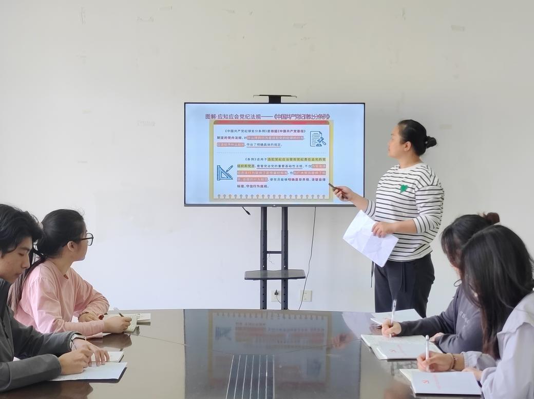 党总支书记李清源强调了《条例》的重要性和实施意义,鼓励师生党员要不断提升政治素养和道德水平,要把严守党纪、增强党性作为终身任务,做到心有所畏、言有所戒、行有所止,进一步明确日常言行的衡量标尺,真正使学习党纪的过程成为增强纪律意识、提高党性修养的生动实践,为落实立德树人根本任务,推进学校事业高质量发展提供坚强政治保证。