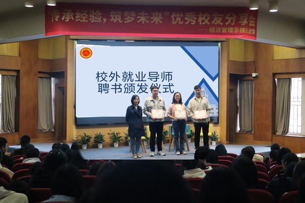 在访谈的自由交流环节,现场同学们积极提问,与三位校友进行了深入的互动交流。大家围绕就业方向的选择、职场发展路径、创业过程中的挑战与机遇等话题展开了热烈的讨论。三位校友耐心解答,分享了自己的见解和建议,为同学们提供了宝贵的建议。活动最后,李清源书记为三位优秀校友颁发了校外就业导师证书以表彰他们对学院就业工作的积极贡献。