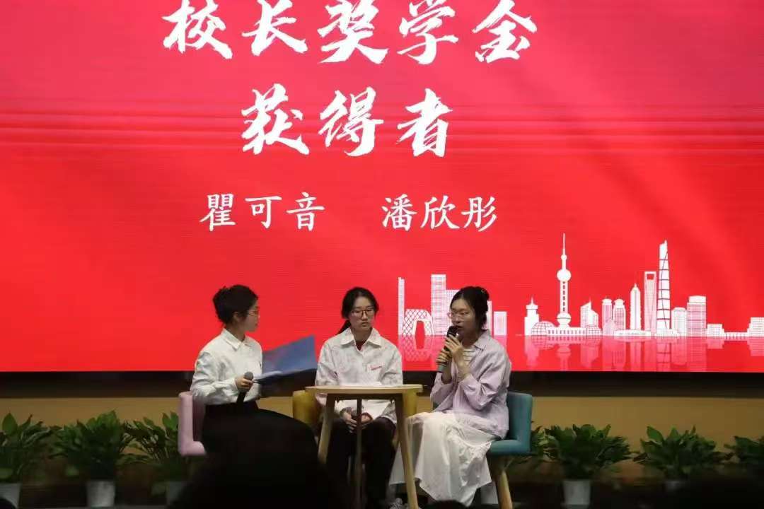在校长奖学金获得者访谈环节,22物流管理2班瞿可音、22国际经济与贸易2班潘欣彤分别分享了成长历程。围绕学业规划,她们指出科学的时间管理和持续的学习热情是取得优异成绩的关键,建议同学们要明确目标、勇于突破。在学生工作方面,她们特别强调沟通协调能力和团队协作精神的重要性,并分享了平衡学业与工作的实践经验。