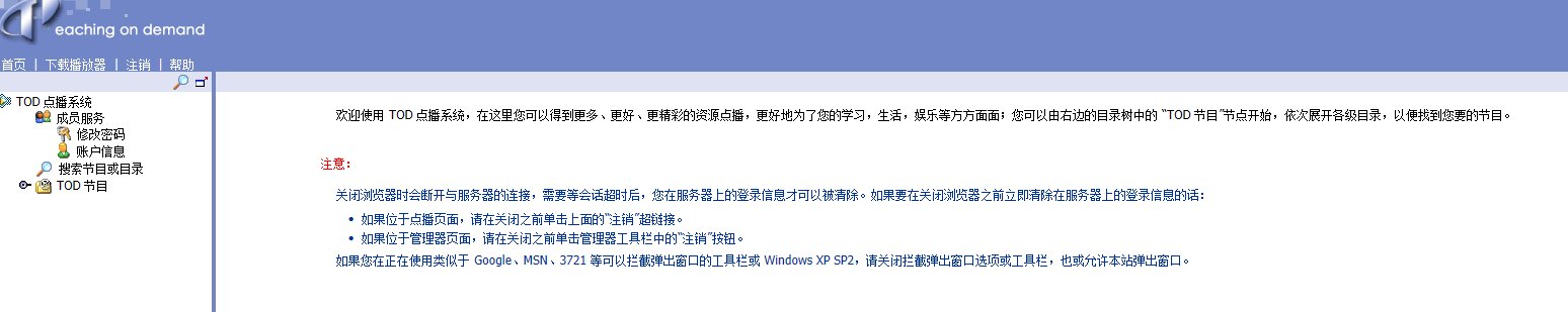 成贤学院视频点播系统:http://211.65.40.19/tod